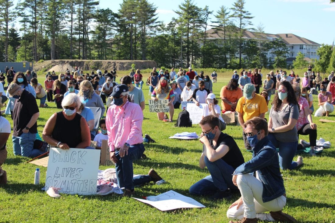 Participants kneeling in silence for eight minutes, 46 seconds in memory of George Floyd. Photo credit: Lenny Rowe.