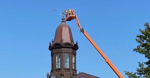 Community Preservation Act funds paid for the restoration of the eagle which has been perched on top of our cupola since 1881. Bill Keohan, Chairs the CPC: