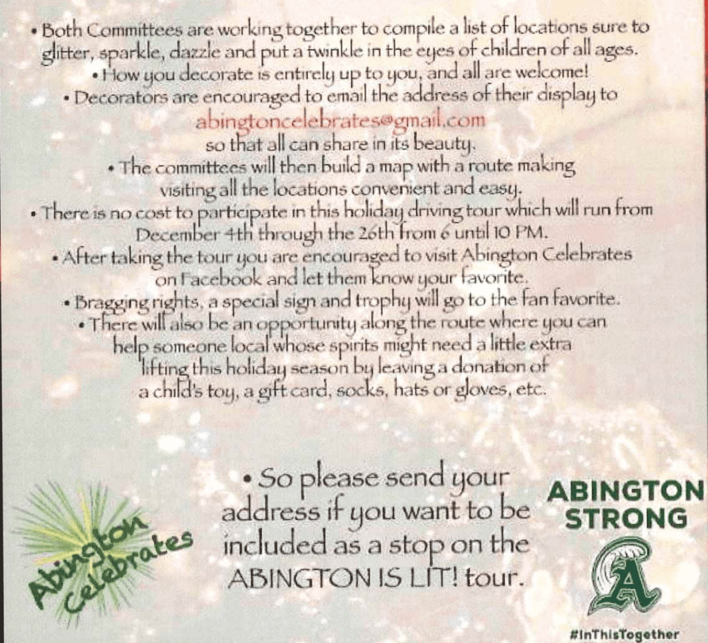 Abington is Lit will be a family friendly, safe event sure to brighten things up this holiday season.