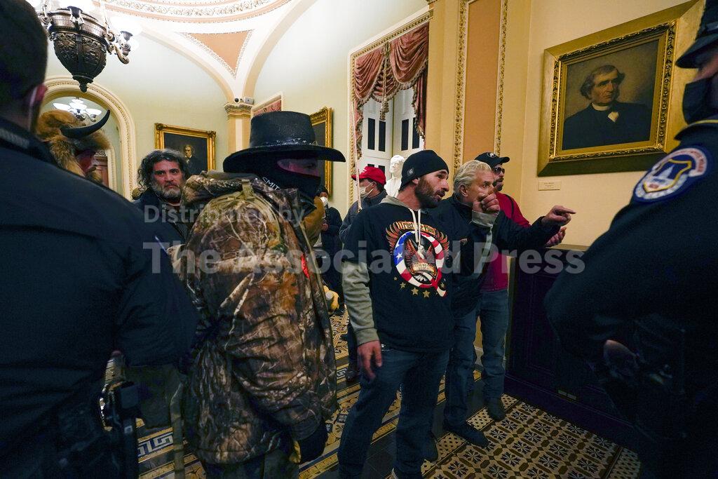Protesters could be seen marching through the Capitol’s stately Statuary Hall shouting and waving Trump banners and American flags.