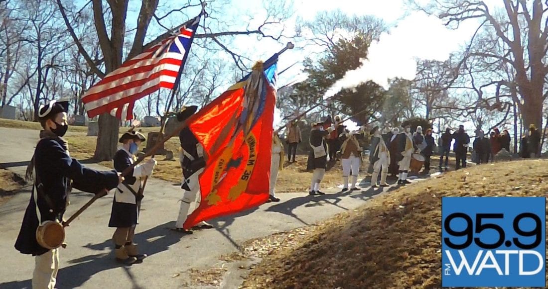 Members of the Hingham Militia and Historical Society braved bitter winds to gather at the Old Ship Church to honor Major General Benjamin Lincoln, a Hingham native and hero of the American Revolution.