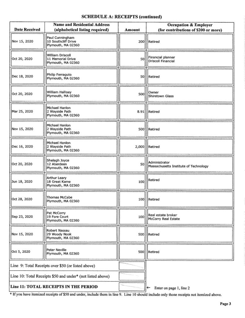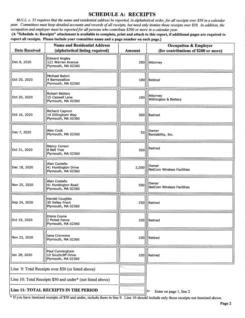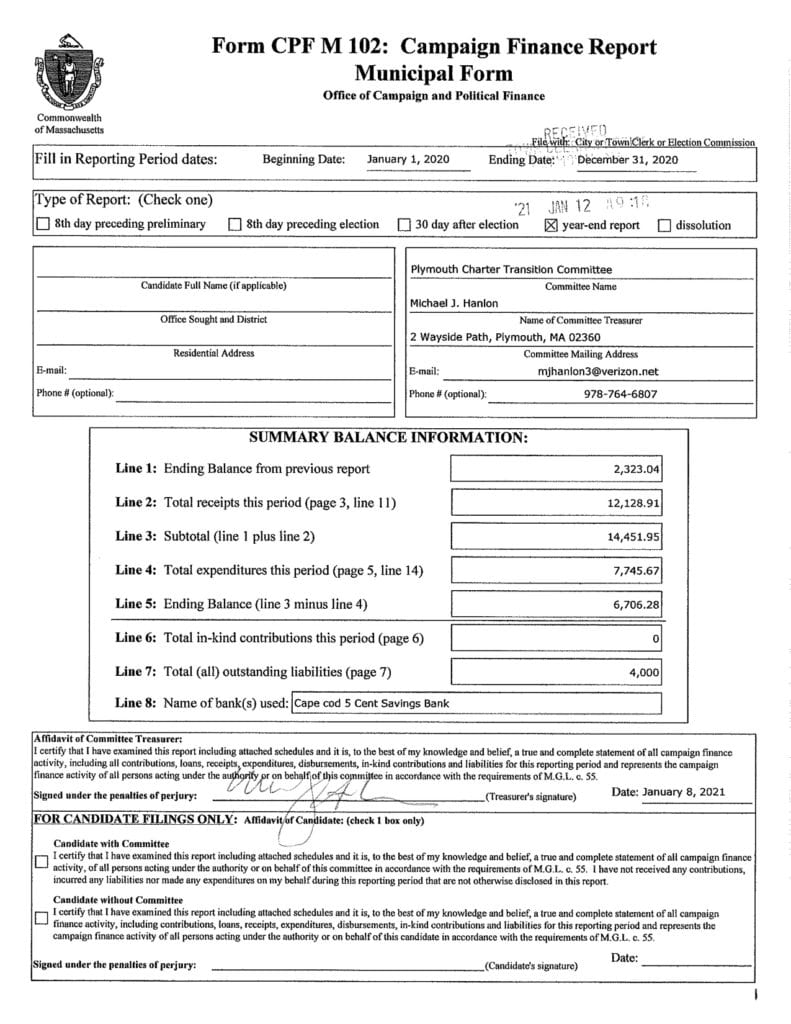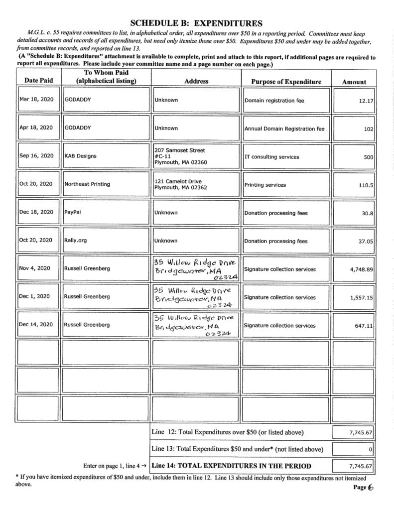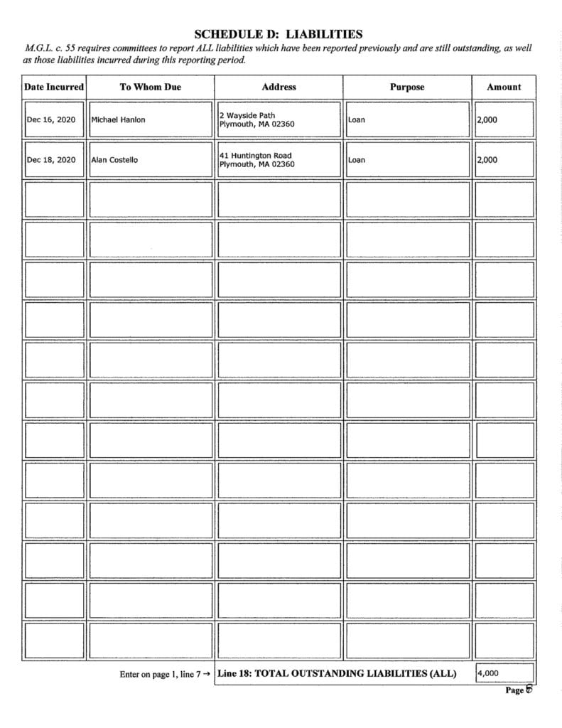 And perhaps because of that Hanlon and Costello both donated funds and loaned money to the PCTC, that’s according to the Campaign Finance Report of Dec. 31, 2020. And as of that date, the cost of securing signatures is close to seven thousand dollars.