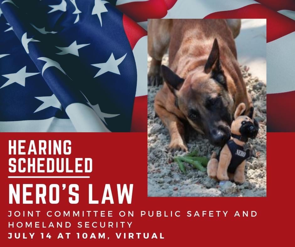 The Joint Committee on Public Safety and Homeland Security heard testimony for Nero’s law, a bill filed to allow for care and transportation of police K-9’s.