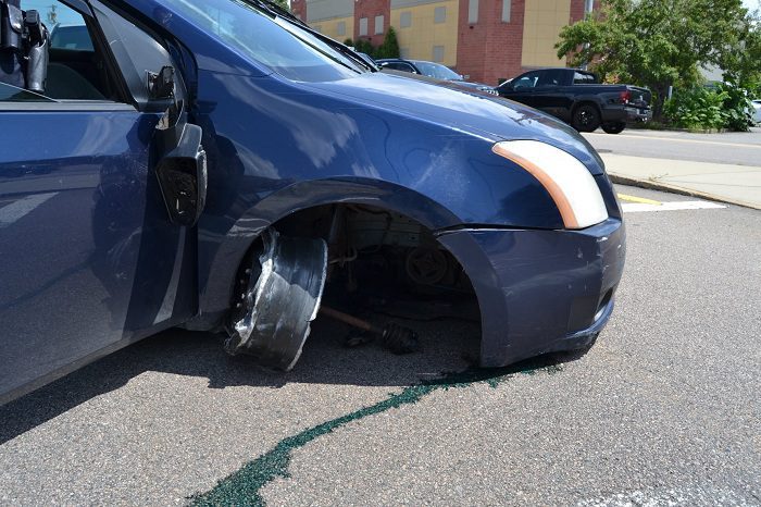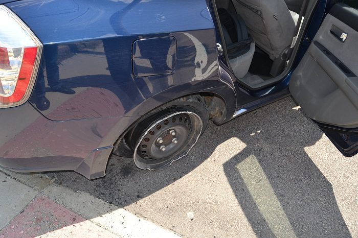 A sergeant spotted the car, which had a flat tire, turning onto Lincoln St. and turned on his emergency lights and siren to stop the car.