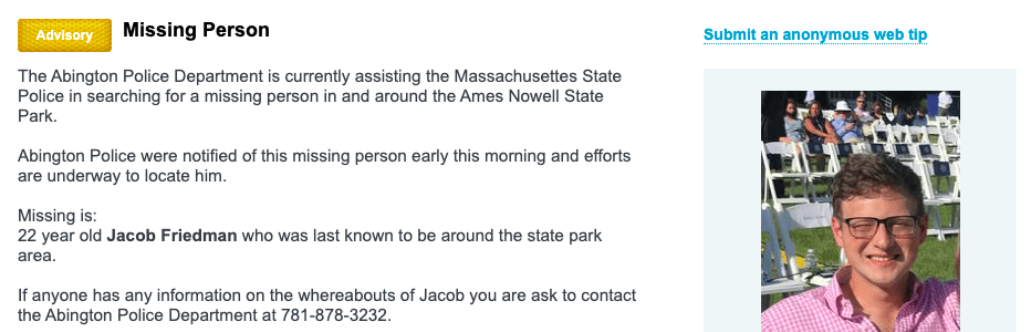 Abington/State Police Searching for Missing Person