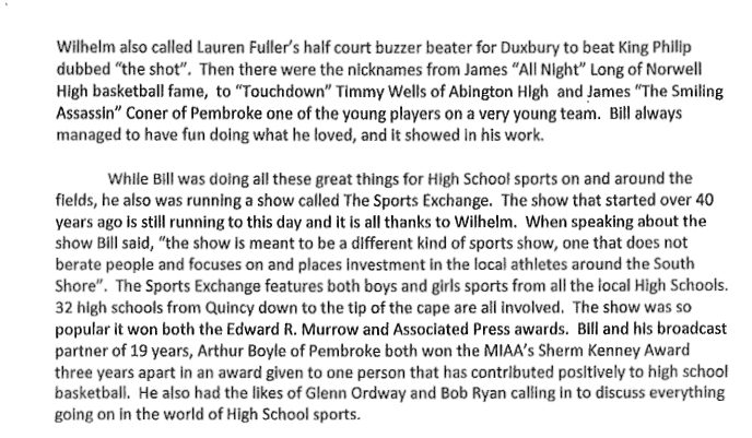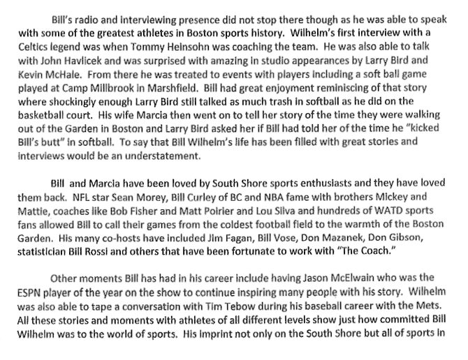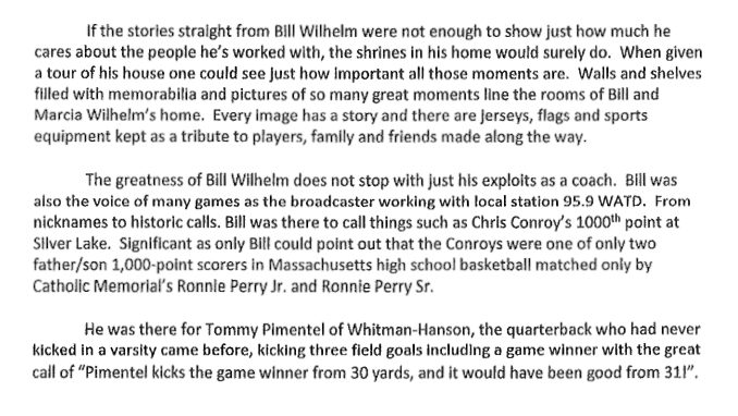 Bill Wilhelm receiving the President’s Award at the Massachusetts Basketball Coaches’ Association meeting in 2011