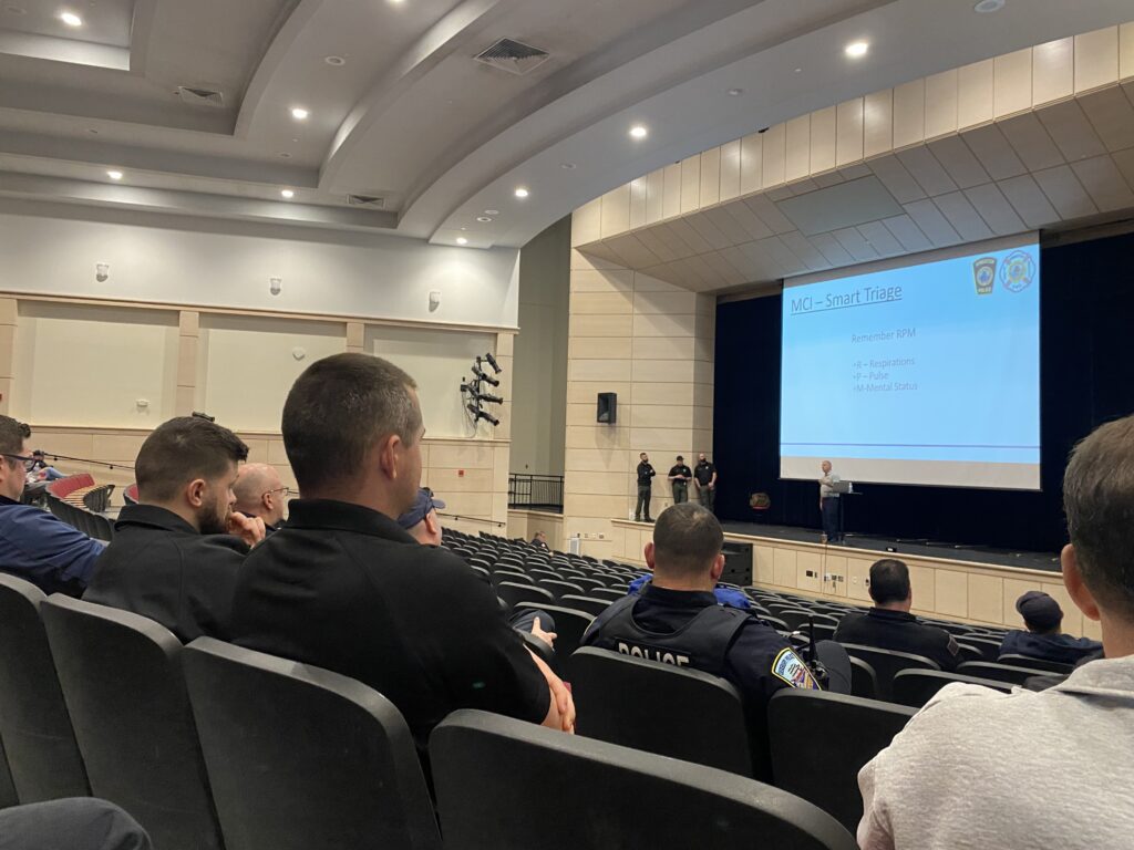 Local first responders started the day in the auditorium for a presentation. Photo credit: Gill Johnston.