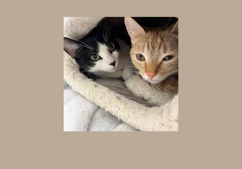 Say hello to Julie and Jane! Julie (tuxedo) and Jane (orange) are sweet gals who are a little on the reserved side. Our friends at the Scituate Animal Shelter tell us they enjoy head scratches and cheek rubs, but are also content curled up in their bed. They do seek out attention and would probably love to hang out with someone on the couch! These calm ladies would likely prefer to be in a home without dogs or small children, but with proper introductions could possibly live with an equally calm dog. They are a bonded pair that will be adopted together – a built-in-buddy for one another!