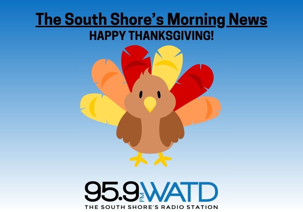 Happy Thanksgiving from all of us at “The South Shore’s Morning News”. Rob, Beth, and Christine will be on LIVE today from 5:00 until 9:00 a.m. Listen for Local News, Weather, Traffic and Sports, plus live call-ins with our relatives and friends. Then we’ll bring you Quinn Kelly and the WATD High School Thanksgiving Football Pre-Game show. Then at 10:00, it’s Marshfield vs. Duxbury.