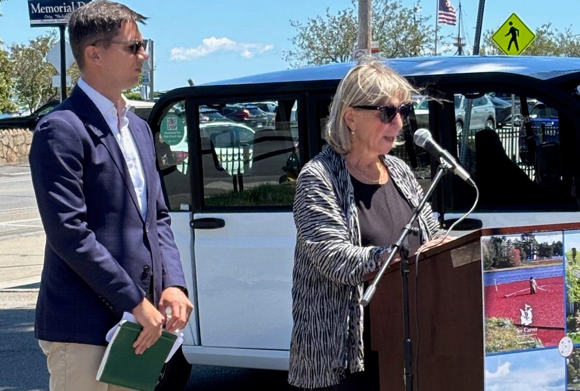 “We brought a car! We’re buying another vehicle for the Town of Plymouth, through a Senate amendment that I’m so fortunate to have the support of the Senate President in securing. And that’s going to expand access to downtown from Kingston so that more people can enjoy everything that Plymouth has to offer.”