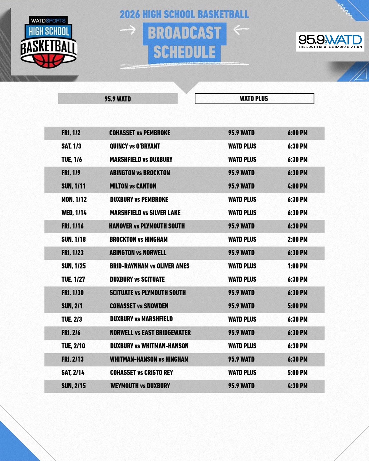 The 2026 WATD High School Basketball Schedule is officially LIVE!