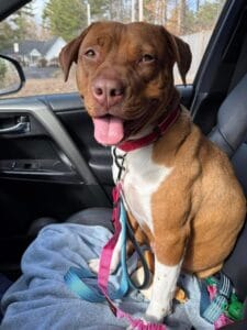 Eve does have a prey drive, so cats or small animals likely aren’t a fit. She can also be selective with other dogs, so a meet-and-greet is a must for any dog siblings to ensure a good match. Momma is not a candidate for adoption with a family that has children, so an adults-only home is best for her.
