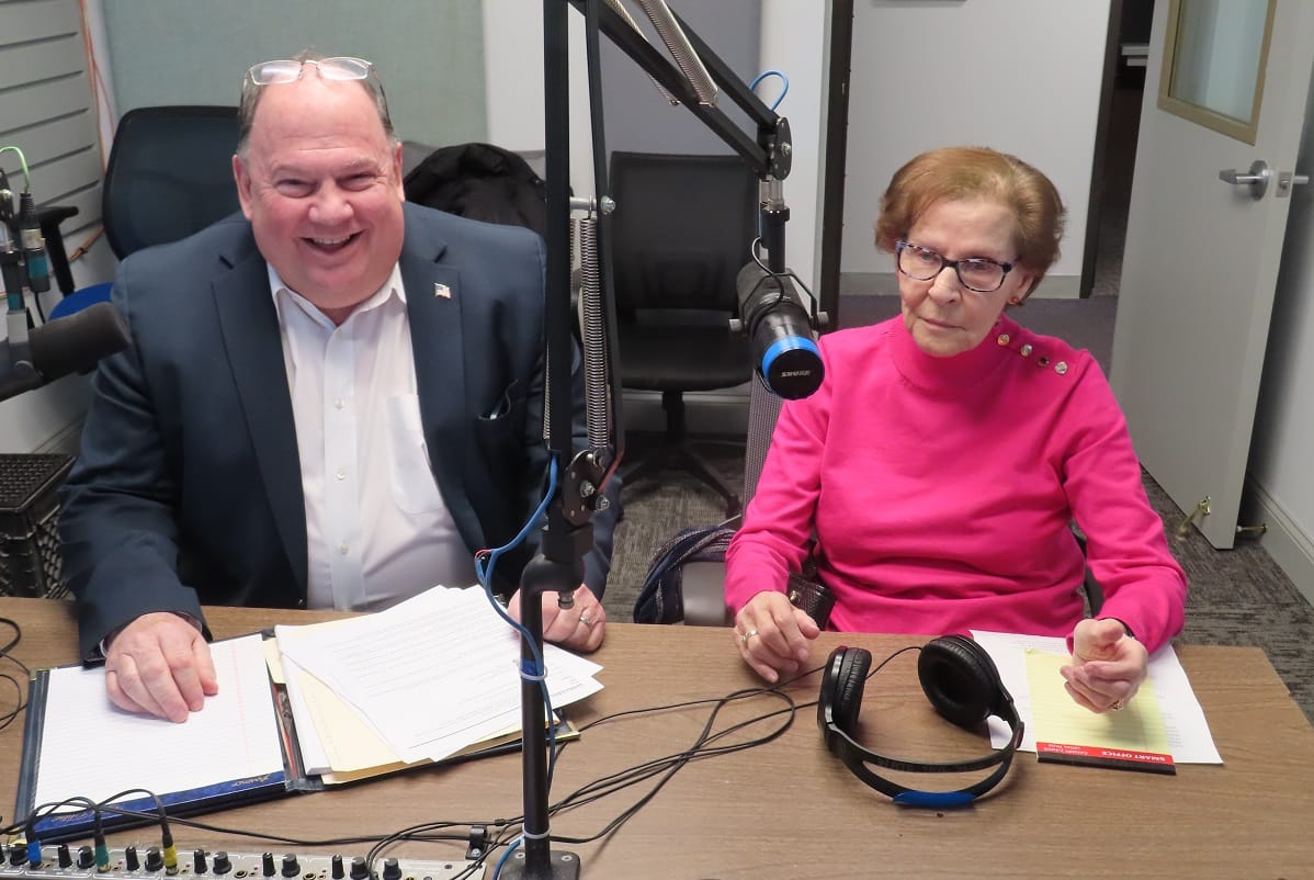 From Left Plymouth Co. Treasurer Tom O'Brien and WATD Reporter Emeritus Bobbi Clark.