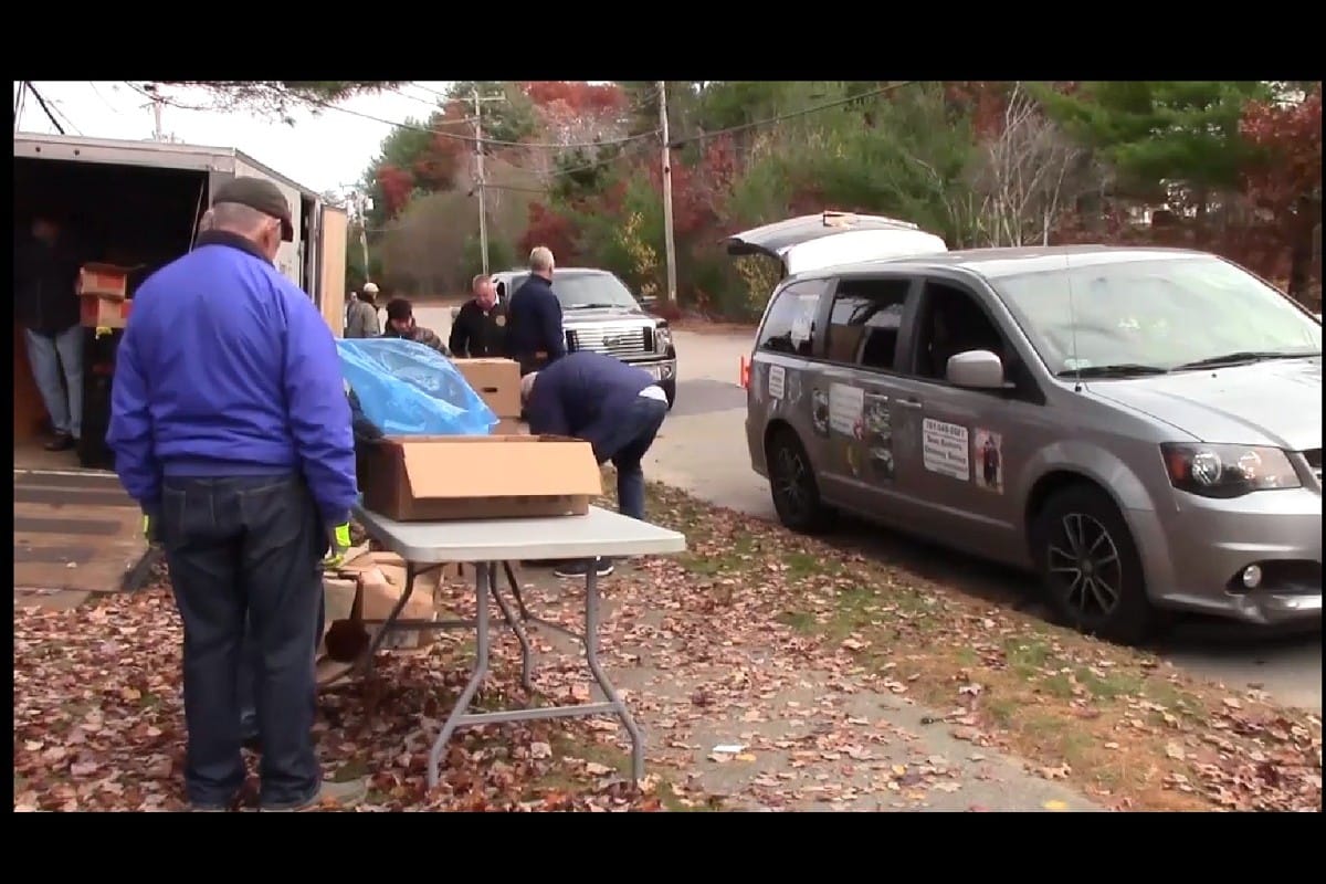 Members of the New England Free Jacks joined the Goon Squad to hand out food during the Veterans Food Drive Thru on Thursday. Veterans Food Drive Thru Held On 9/11 Anniversary New England Free Jacks